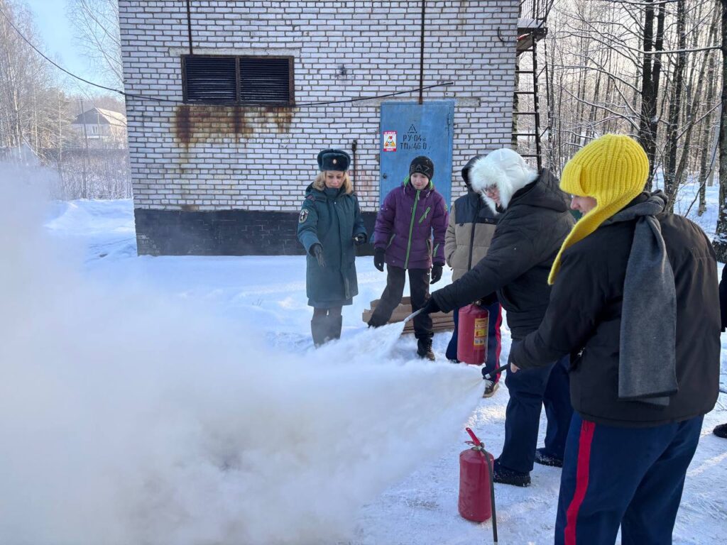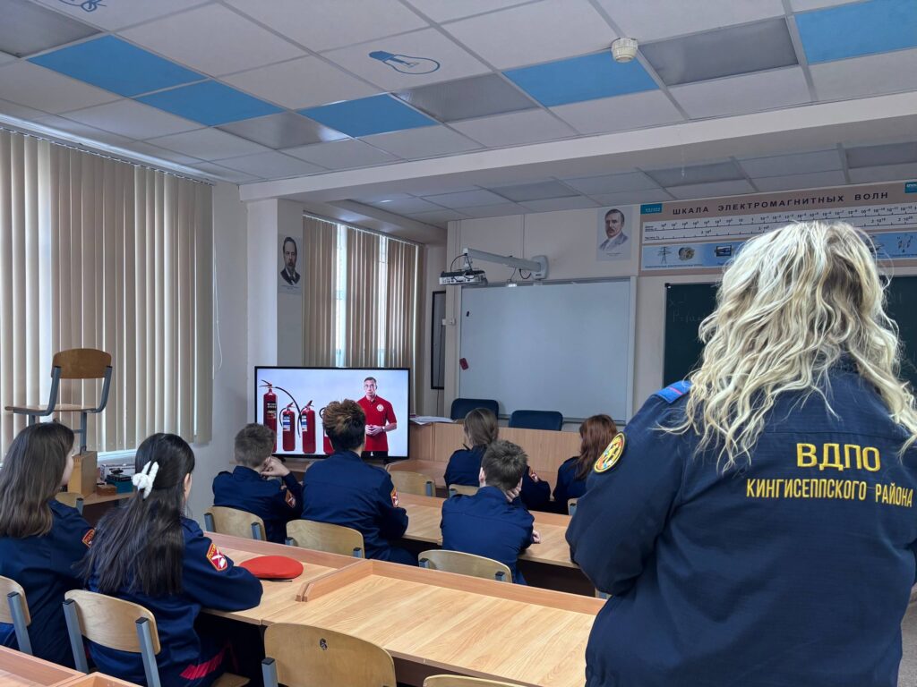 Сотрудники ВДПО и ОНДИПР провели урок по пожарной безопасности в кадетском классе школы в Вистино.